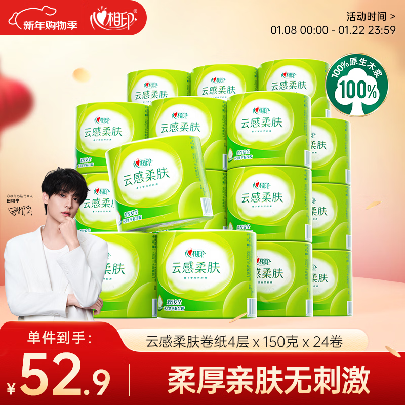 心相印【田栩宁推荐】有芯卷纸云感柔肤 4层150克*24卷 可冲散卫生纸