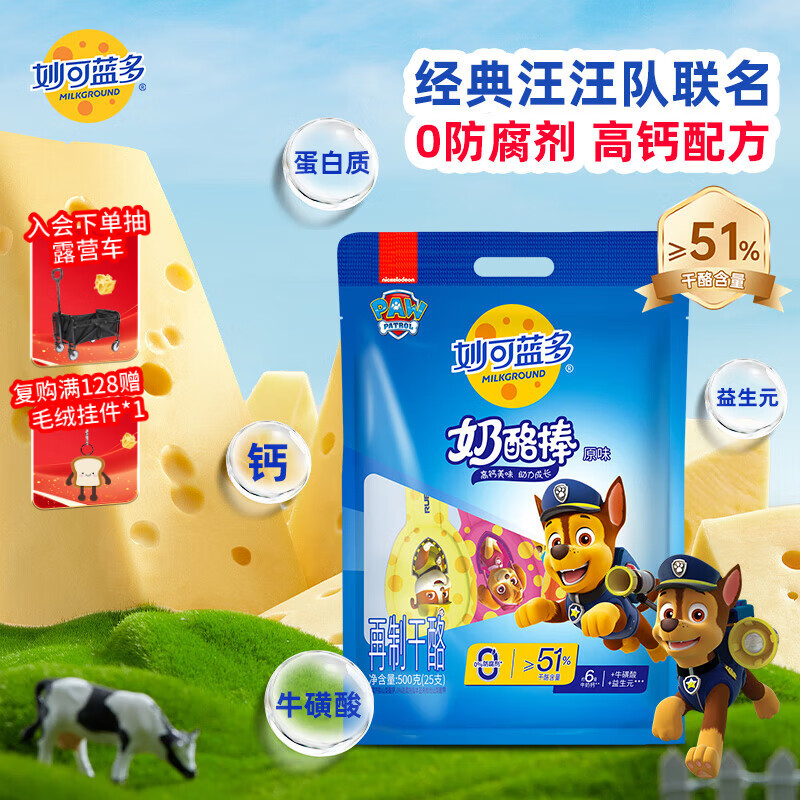 妙可蓝多 汪汪队儿童奶酪棒500g 原味 高钙0防腐剂健康营养宝宝零食
