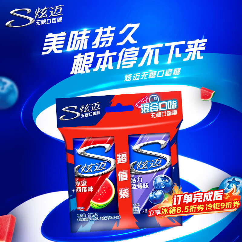 炫迈 无糖口香糖 西瓜蓝莓味28片50.4g*2盒 糖果 零食 清新口气 提神