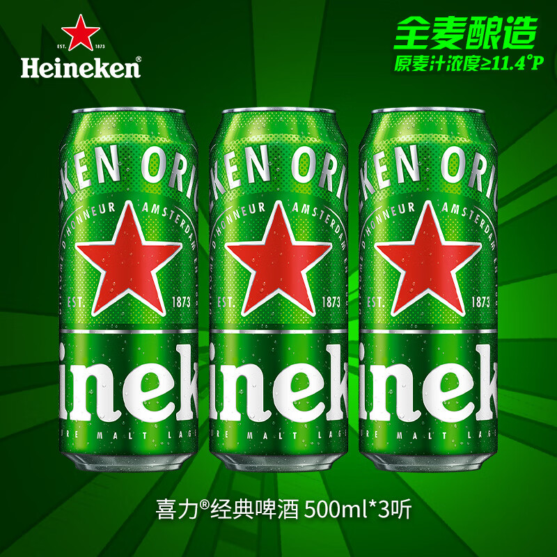 喜力经典500ml*3听 喜力啤酒Heineken