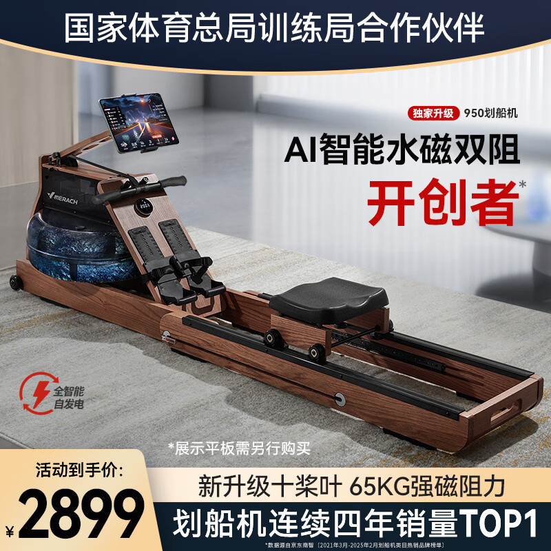 麦瑞克(MERACH)划船机家用自发电水阻磁控智能调节健身器材室内运动含可折叠 950 新升级十桨叶PRO-自发电-折叠