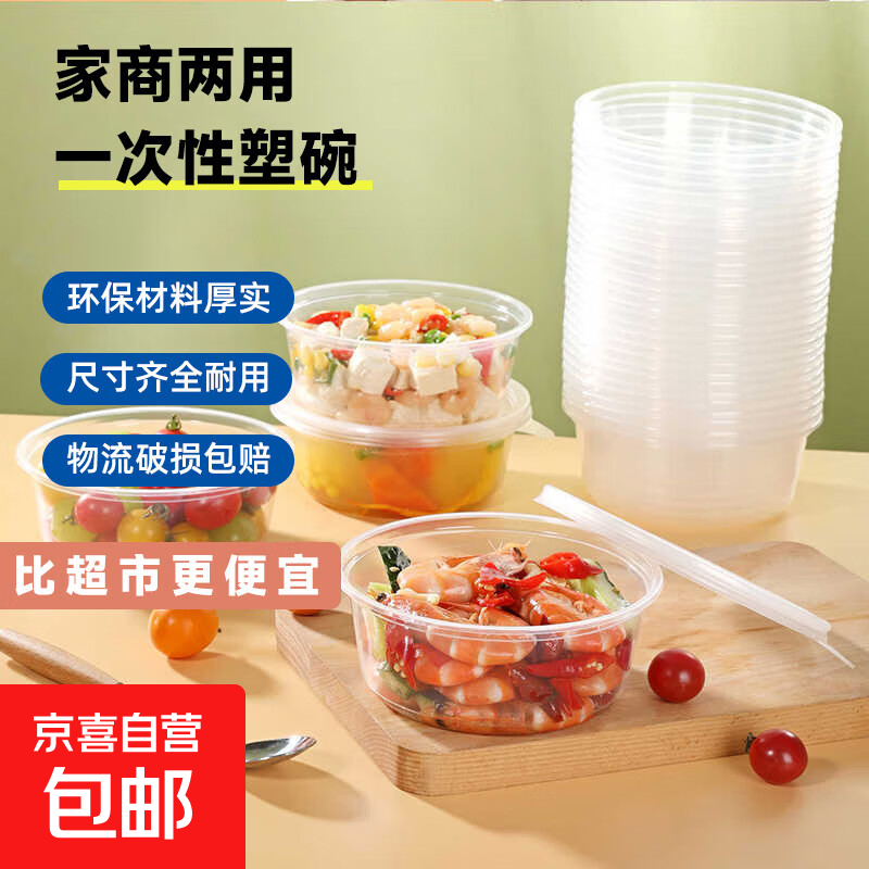 一次性餐盒带盖加厚家用饭盒便当盒圆碗形透明外卖打包盒 1000环保圆形(860ml)10套