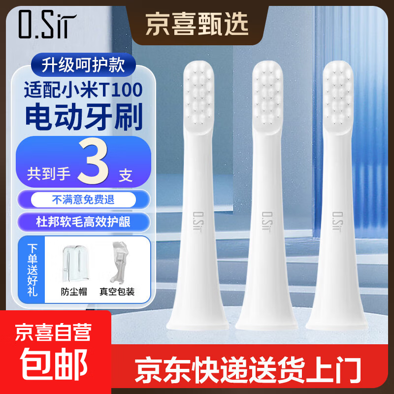 O.Sir适配小米电动牙刷头T100/T200/T300/T500/T700多型号细软刷毛适用米家声波电动牙刷杜邦软毛 【日常清洁型】适配T100通用型 3支