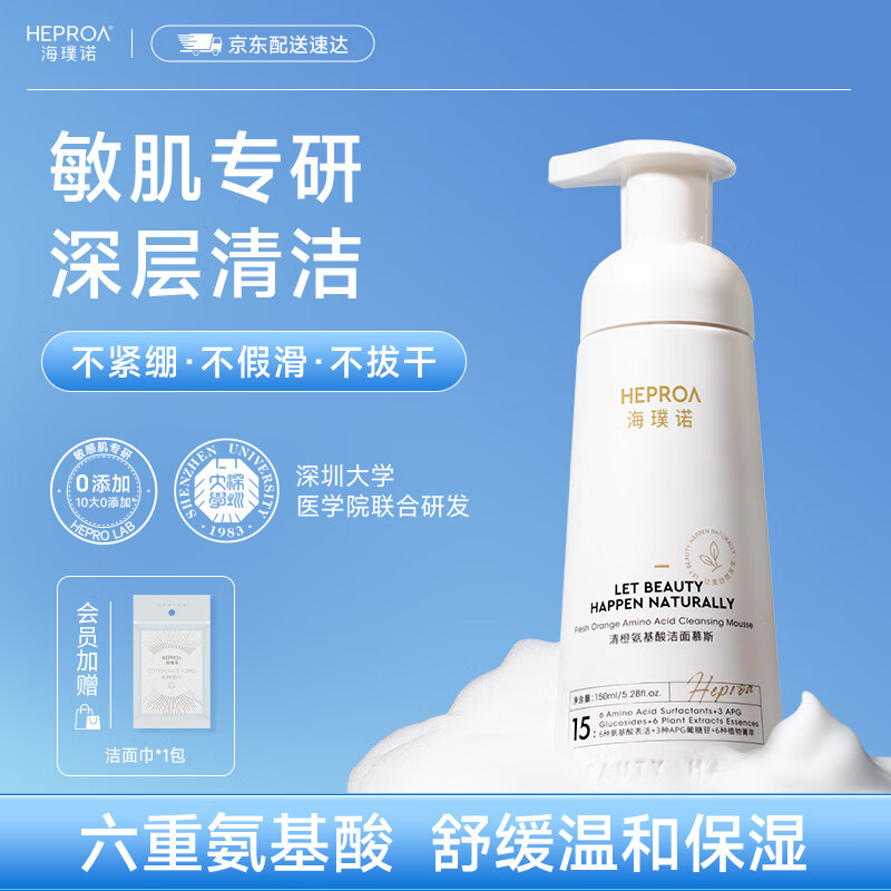 海璞诺氨基酸洗面奶敏感肌慕斯泡沫温和秋冬换季学生男女洁面150ml