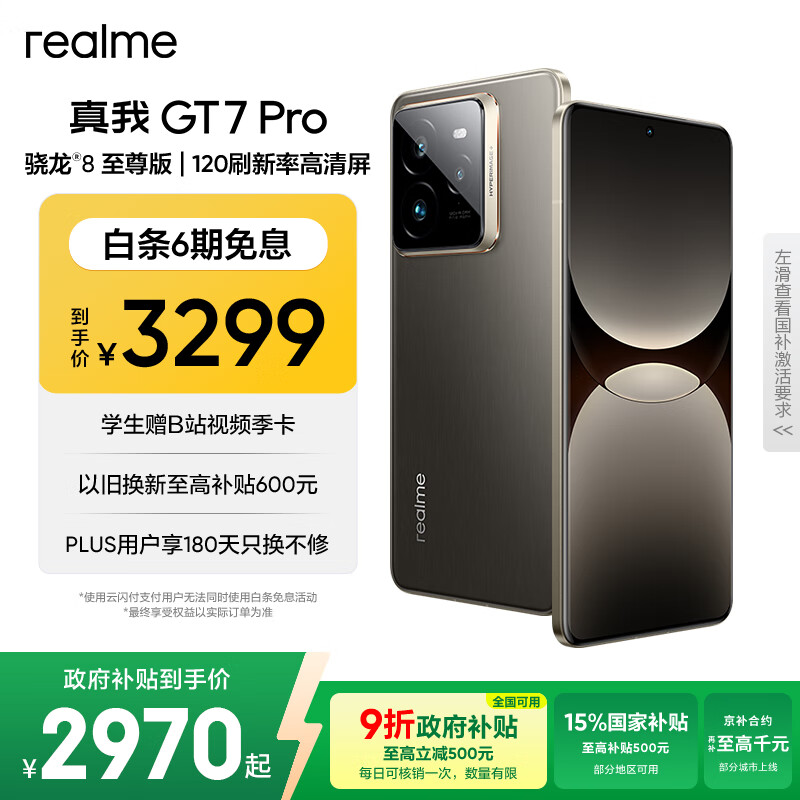 realme【国家补贴】真我GT7 Pro 16+256星迹钛 骁龙8至尊版 6500mAh大电池 三星OLED屏 智能AI手机