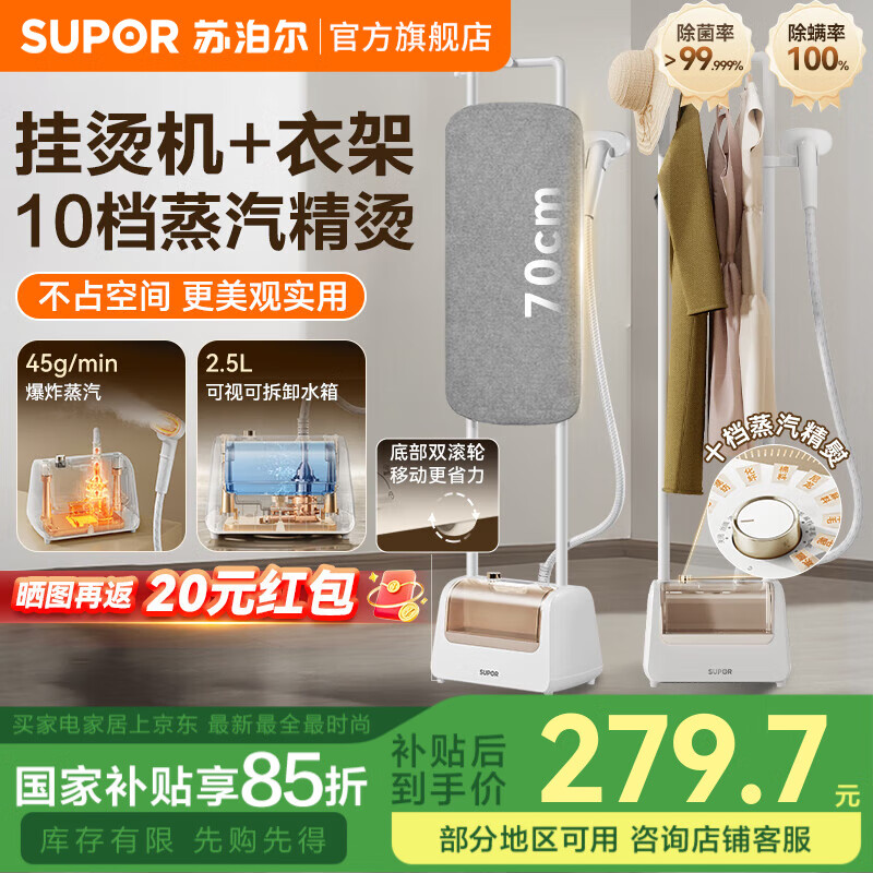 苏泊尔(SUPOR)挂烫机家用电熨斗熨烫机手持蒸汽熨烫衣服物大功率大蒸汽立式一体熨烫衣板衣物护理服装店2025新款 SJ-U12B