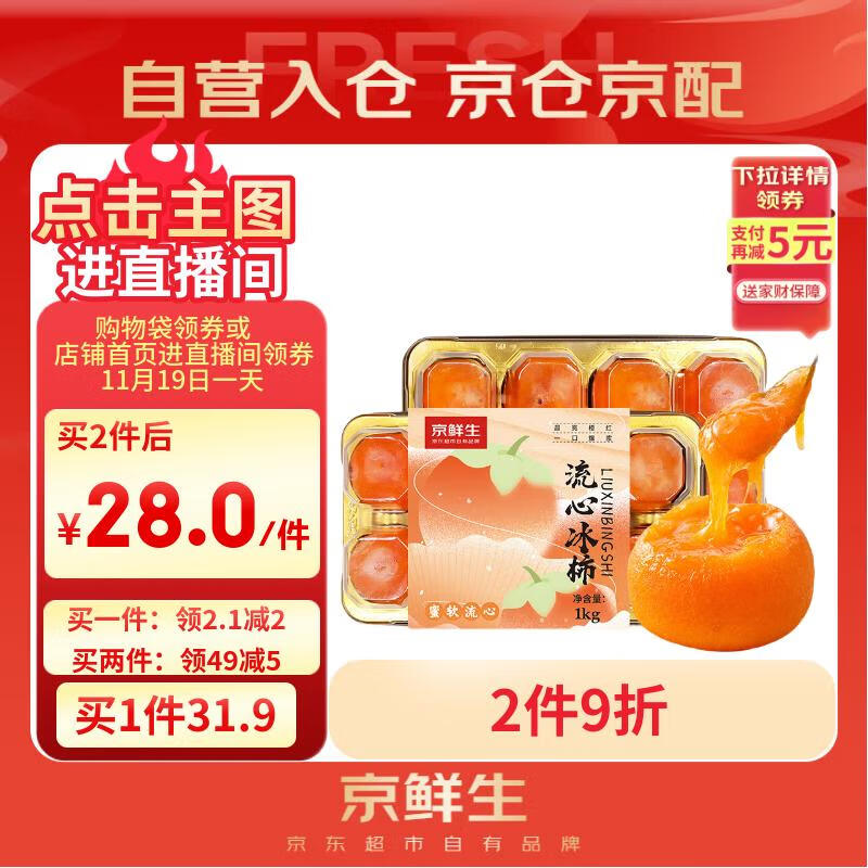 京鲜生 陕西富平流心冰柿 净重500g*2盒装 单盒 6-8枚 生鲜水果