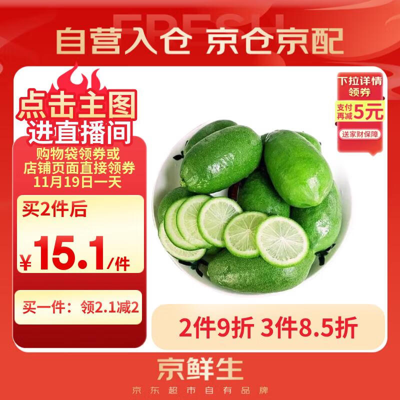 京鲜生 海南香水柠檬 2斤 单果90g-120g 生鲜水果