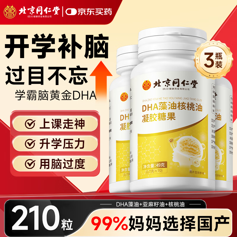 同仁堂dha补充脑强记dha儿童3-12岁学生补青少年12-18岁核桃油210粒