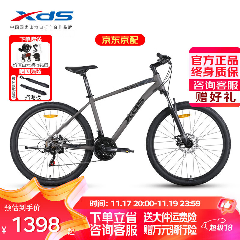 喜德盛山地儿童自行车黑客380禧玛诺后变26轮径21速碟刹单车 灰黑17英寸