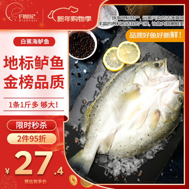 钓鱼记开背海鲈鱼1斤-1.3斤 三去 冷冻 生鲜 鱼类 年货送礼 家庭聚餐