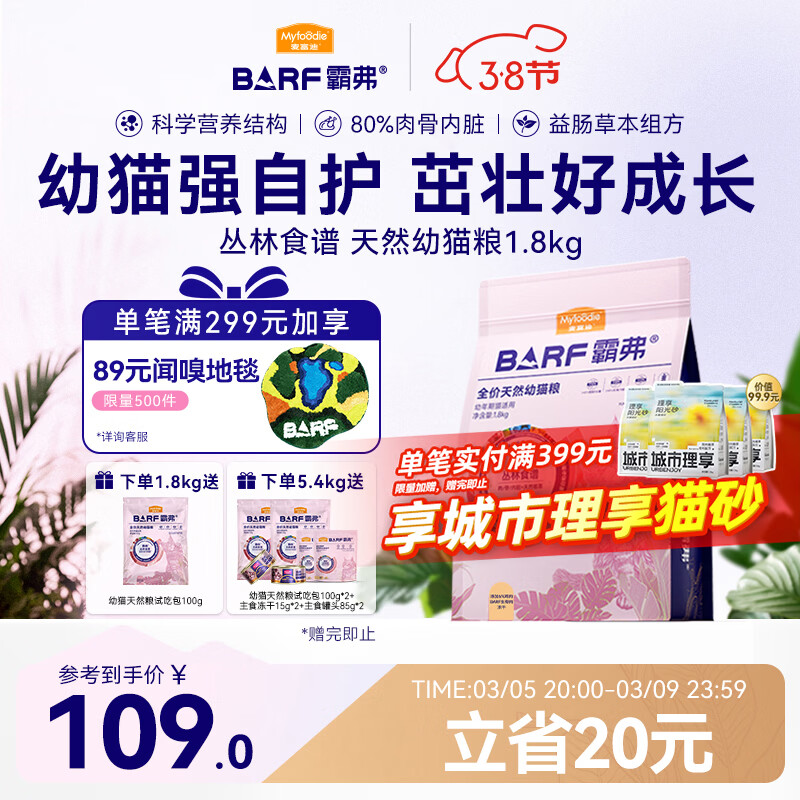 麦富迪猫粮 barf霸弗天然猫粮冻干幼猫粮高蛋白温和养护肠胃鲜鸡肉1.8kg