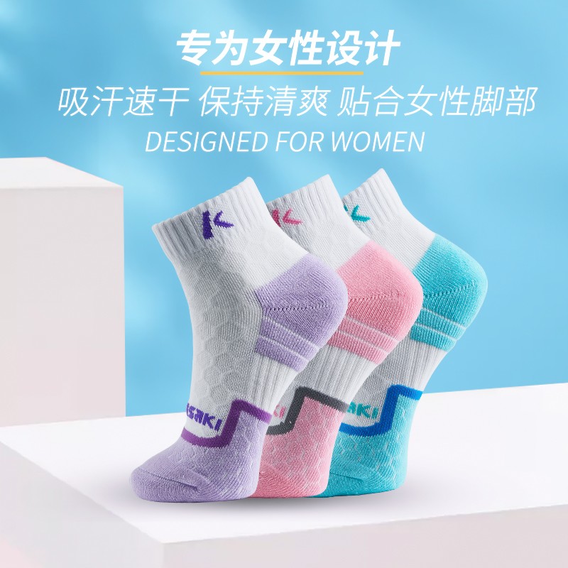 川崎(KAWASAKI)羽毛球运动袜女款跑步健身中短女袜子毛巾底吸汗透气3双装 R237D蓝/粉/紫(3双装)