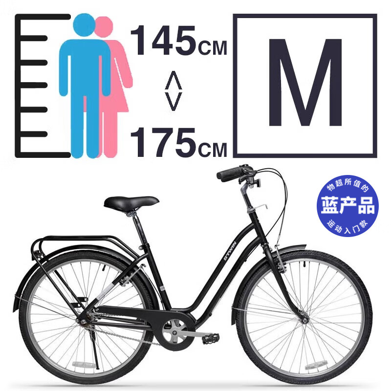 迪卡侬迪卡侬城市自行车26寸代步单速男女上班通勤轻便学生单车OVB1 黑色S/M号(1.45-1. 75m) 26英寸 单速