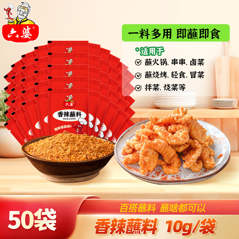 六婆辣椒面火锅蘸料10g*50袋香辣味凉拌调料麻辣烫烧烤撒料烤肉料
