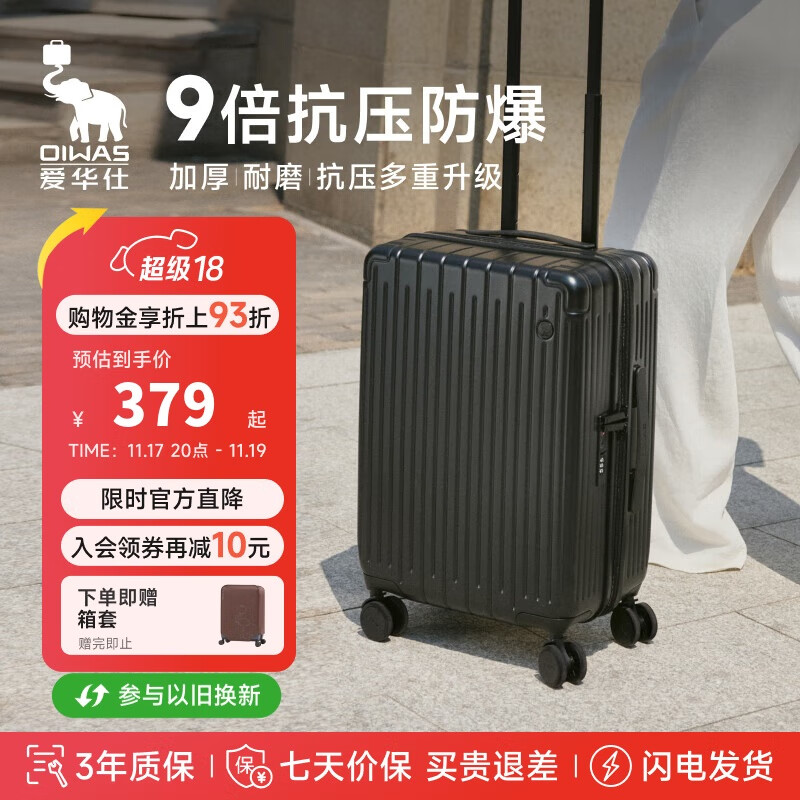 爱华仕行李箱男拉杆箱女大容量旅行箱轻便万向飞机轮24英寸密码箱骑士黑