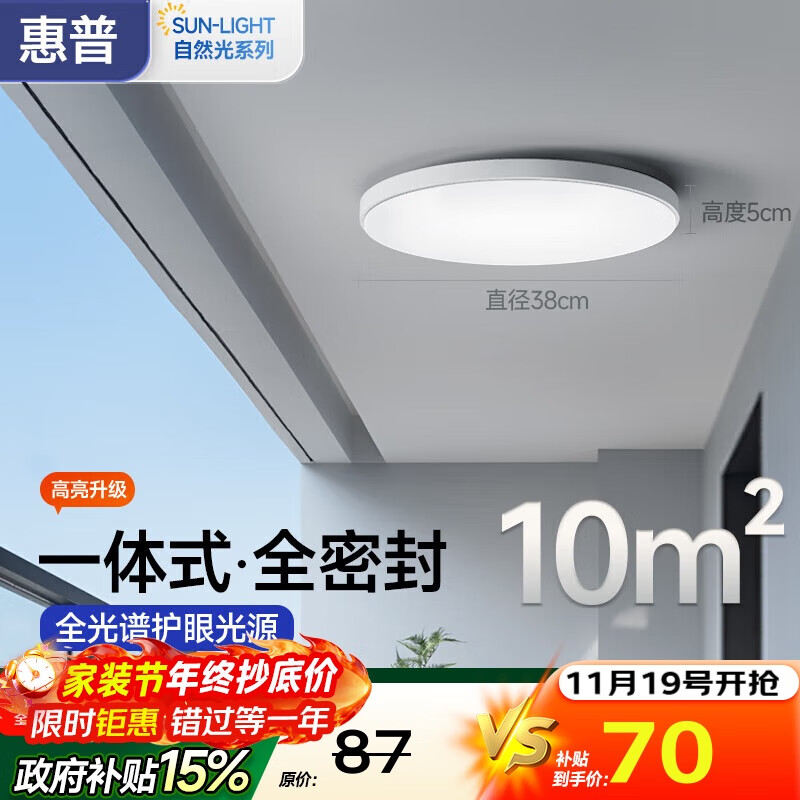 惠普护眼三防吸顶灯led超薄卧室厨卫阳台走廊过道灯中山灯具