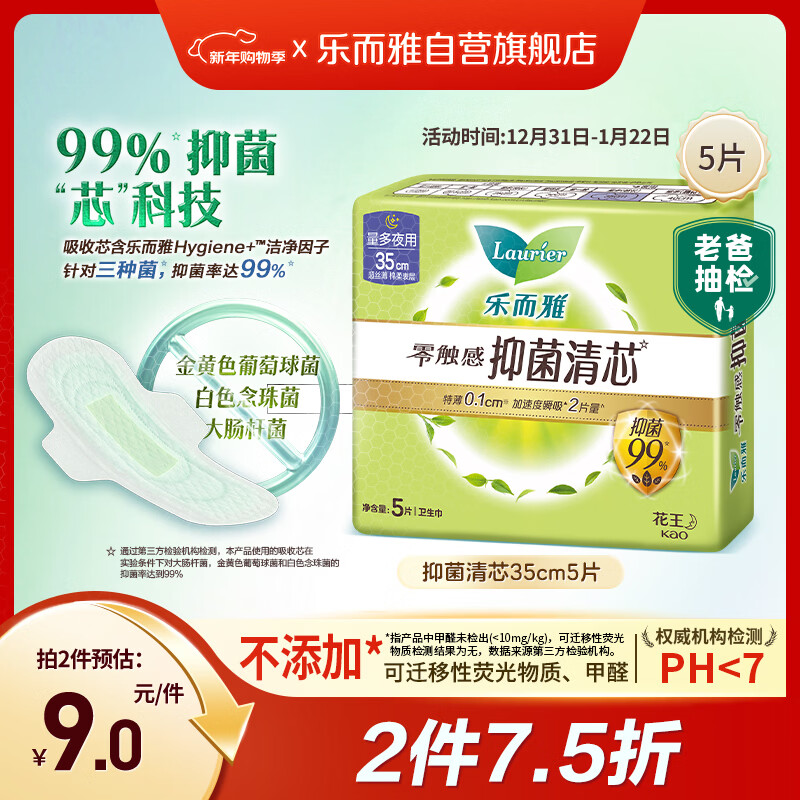 乐而雅花王零触感抑菌清芯夜用卫生巾35cm5片祛味姨妈巾京东自营新国标