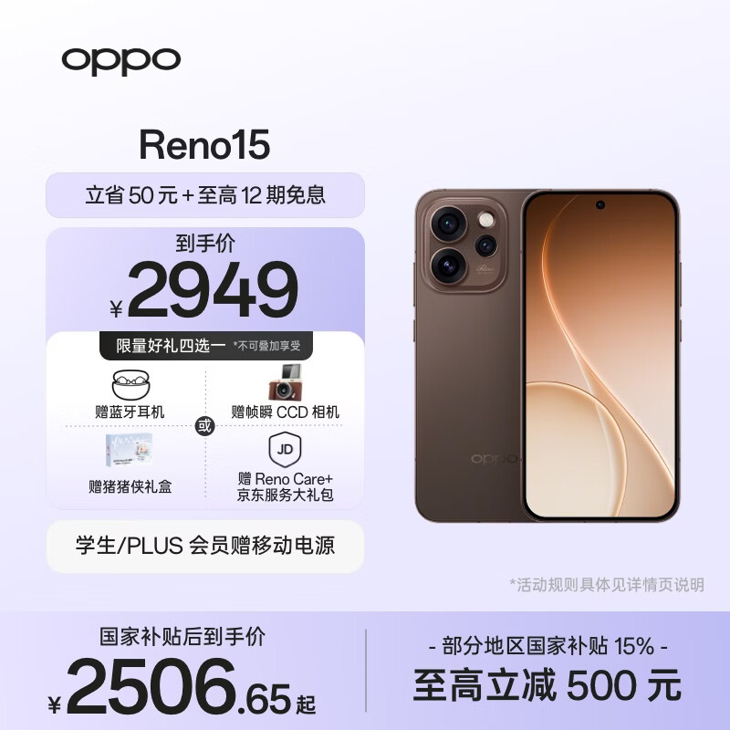 OPPO Reno15 12GB+256GB 可露丽棕 2亿像素 实况拼图 5G智能小直屏 学生游戏 AI拍照手机 新品国家补贴
