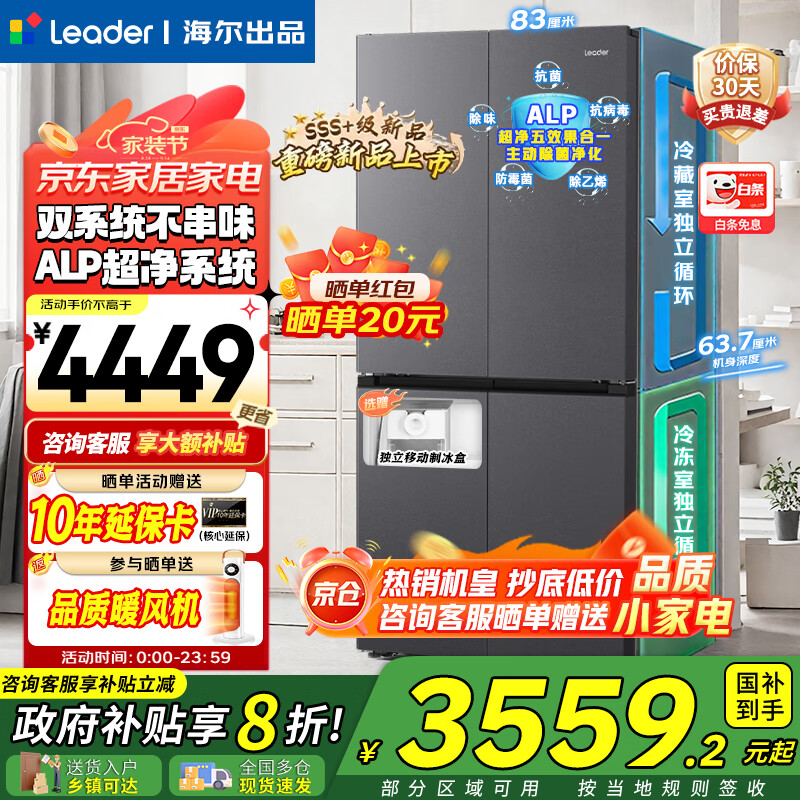 海尔(Haier)冰箱2025年新品leader575双系统双蒸发器十字四开门新一级能效ALP超净五合一大容量家用电冰箱 【新品首发+双系统双循环+全域全净系统】