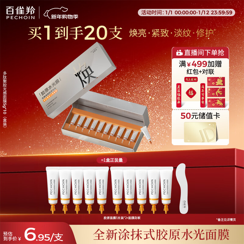 百雀羚(PECHOIN)多肽聚胶光感面膜胶原水光抗皱补水保湿涂抹面膜京东自营新年礼物