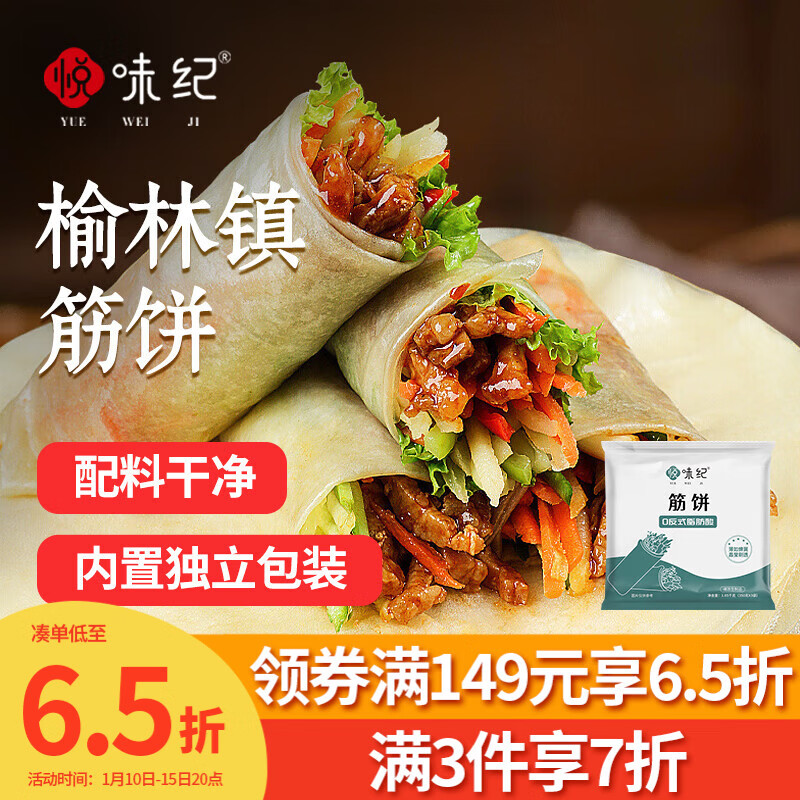 悦味纪 榆林镇筋饼350g*3包 共60张 烤鸭饼手抓卷饼春饼 早餐半成品