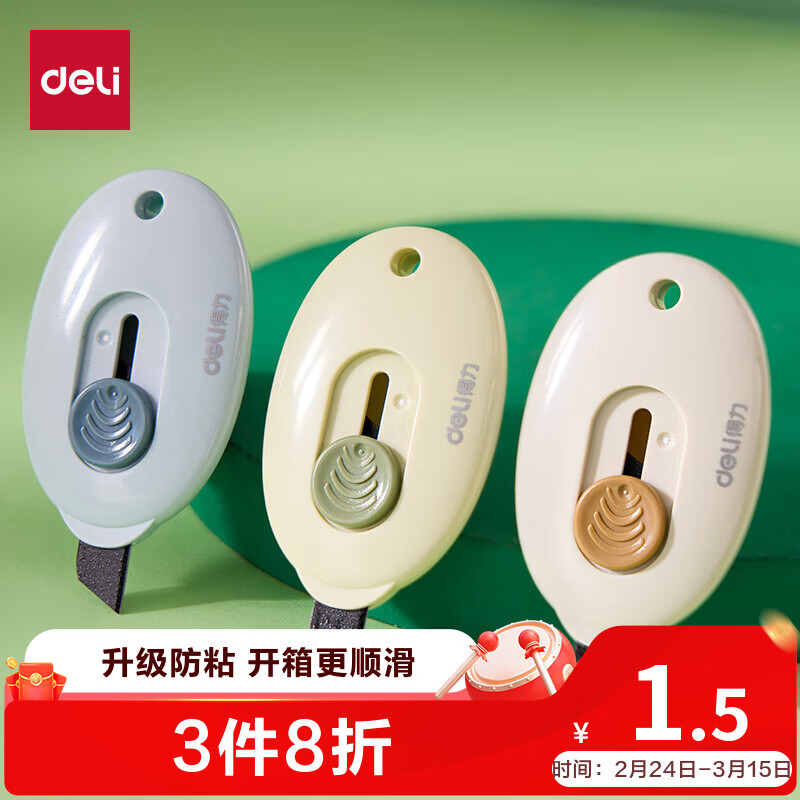得力(deli)开箱美工刀不粘胶迷你小刀美工刀片/裁纸刀片特氟龙不粘胶防锈 拆快递小刀神器 单把颜色随机2050s