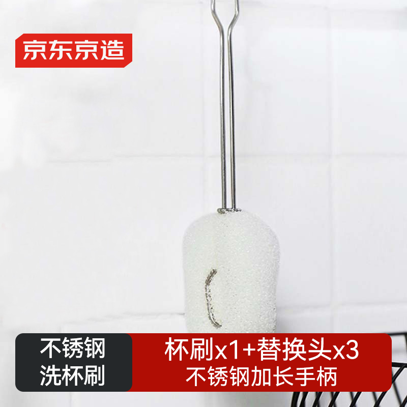 京东京造 洗杯刷 长柄奶瓶刷杯刷玻璃杯保温杯清洁刷 杯刷*1+替换头*3
