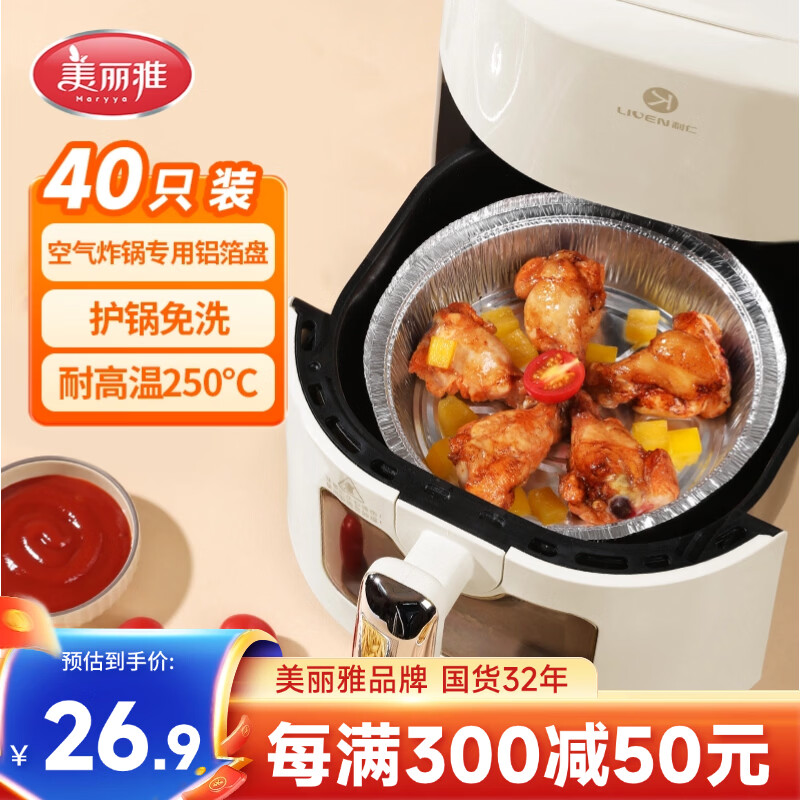 美丽雅空气炸锅锡纸盘18.5cm*40只炸锅烤箱专用铝箔纸烘培烤盘