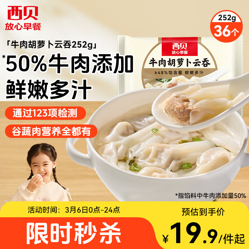西贝莜面村 牛肉胡萝卜云吞252g 共36个 小馄饨宝宝儿童早餐半成品