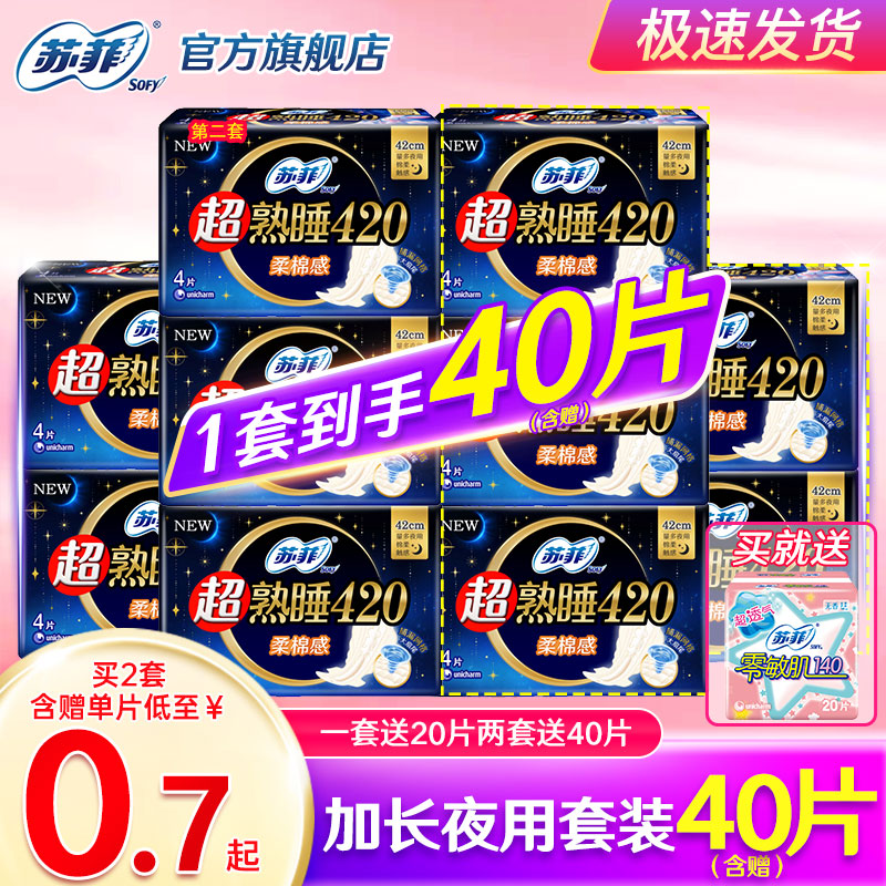 苏菲卫生巾夜用290mm姨妈巾量大加长量多整箱套装批发 夜用组合 420mm 40片 【含赠】