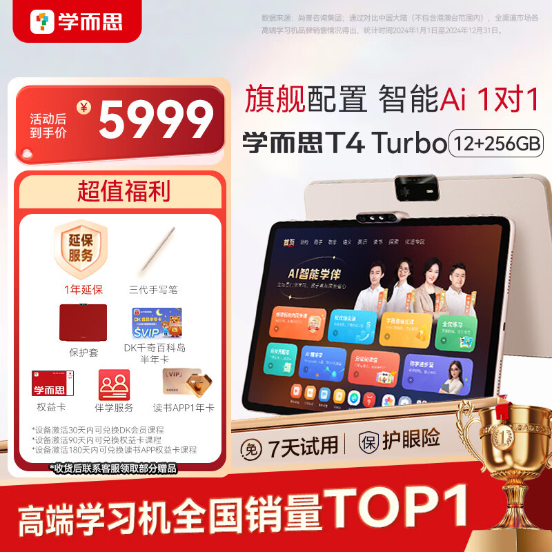 学而思学习机T4 Turbo【2025新款】三大智能学习模式护眼大屏学习平板电脑全学段13.2英寸 12+256GB