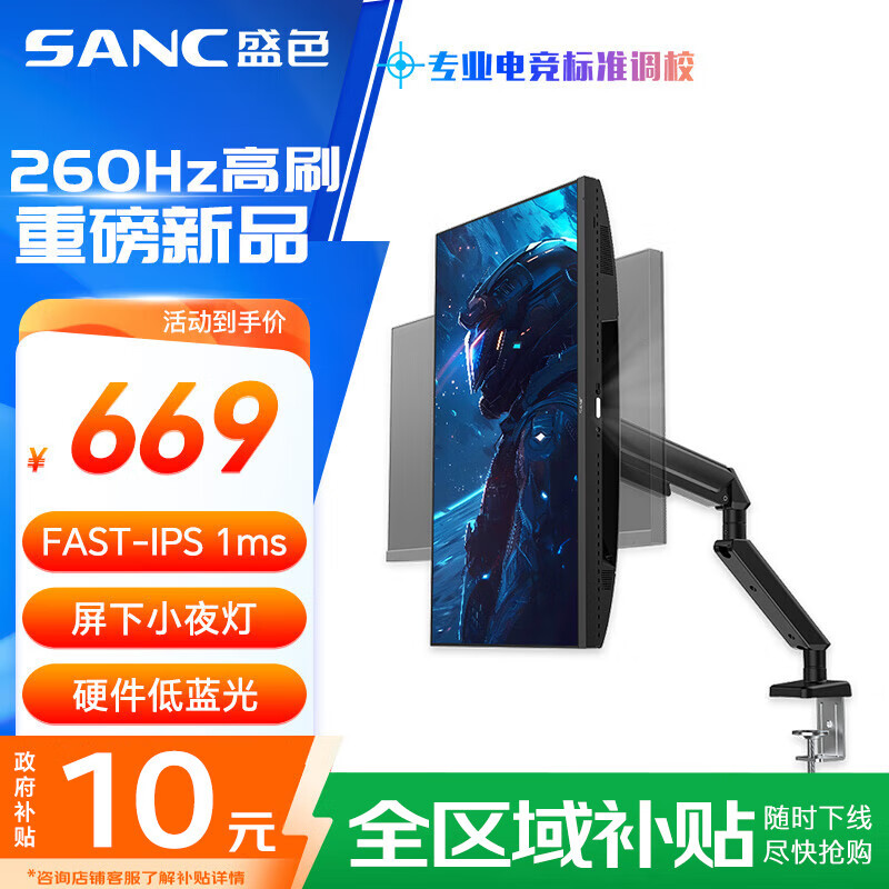 SANC盛色24.5英寸超频260Hz硬件低蓝光 FastIPS电竞显示器 耳机挂架小夜灯电脑屏幕 N50Pro6机械臂版