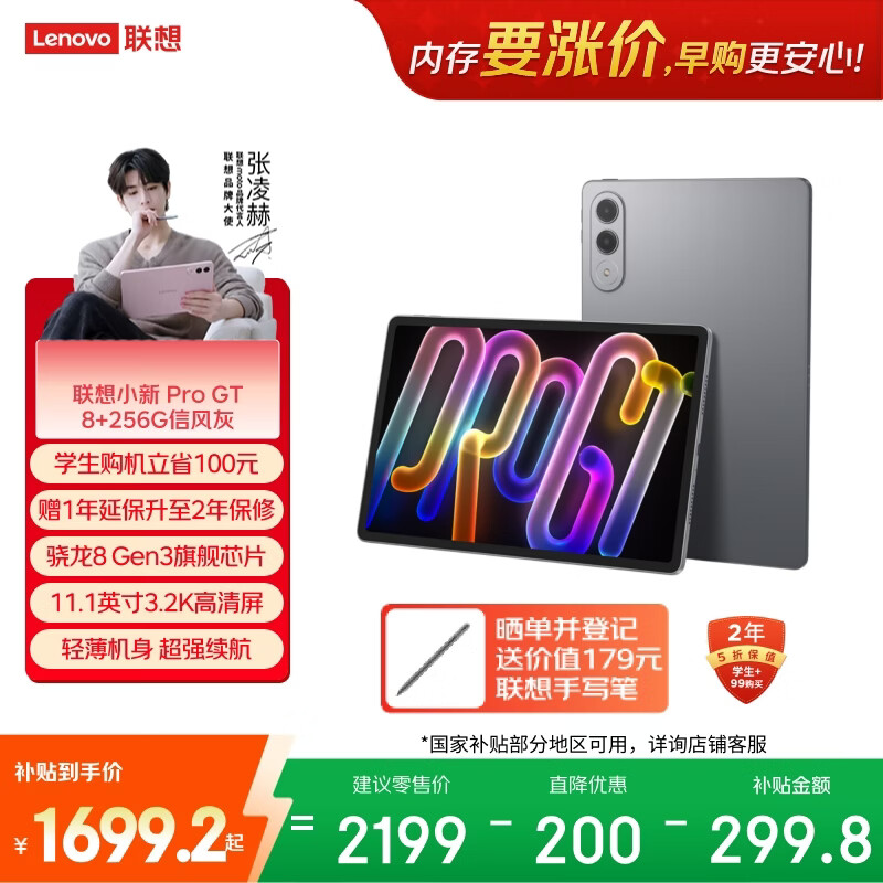 联想平板小新 ProGT【张凌赫同款平板】11.1英寸办公AI学习游戏平板3.2K超清高刷 骁龙8Gen3 8+256G灰