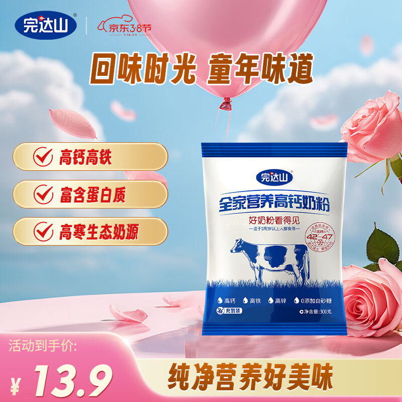 完达山全家营养高钙奶粉300g 高钙高铁高锌儿童成人全家奶粉