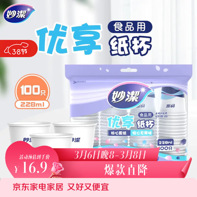 妙洁 纸杯 100只*228ML 一次性杯子茶水加厚食品级