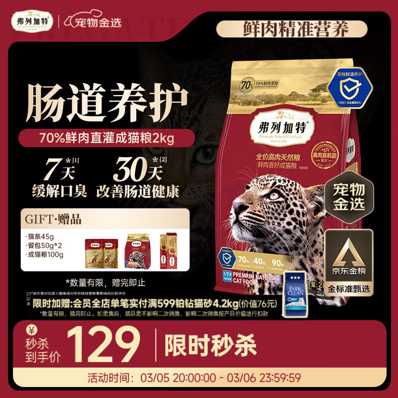 弗列加特猫粮 全价鲜肉天然粮 肠道养护配方 成猫猫粮鸡肉2kg【宠物金选】