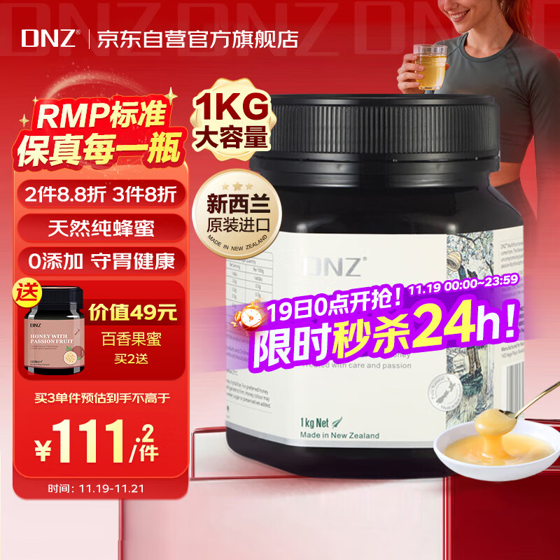 DNZ新西兰进口 天然成熟百花多花纯蜂蜜1000g送长辈父母礼物全家营养