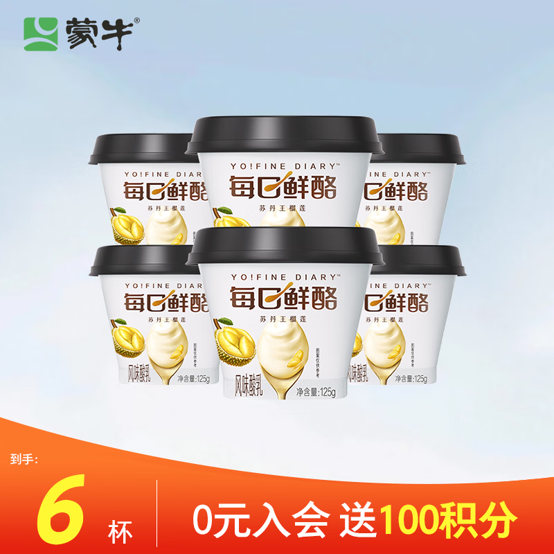 蒙牛(MENGNIU)全程冷链 每日鲜酪苏丹王榴莲风味酸奶 125g×6杯