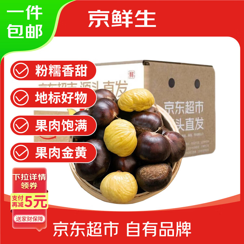 京鲜生 河北迁西新鲜油栗 净5斤单果27mm+粉糯香甜 粒粒香甜源头直发