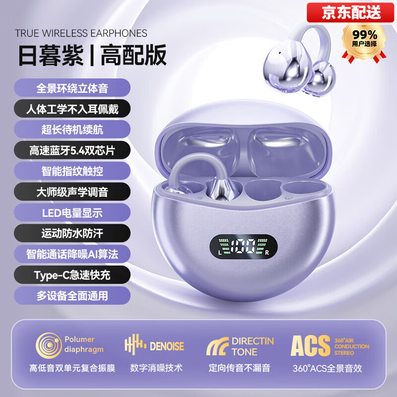 漫步者(EDIFIER)同款无线夹耳式蓝牙耳机2025新款不入耳高音质骨传导跑步运动专用耳机 紫色 M79