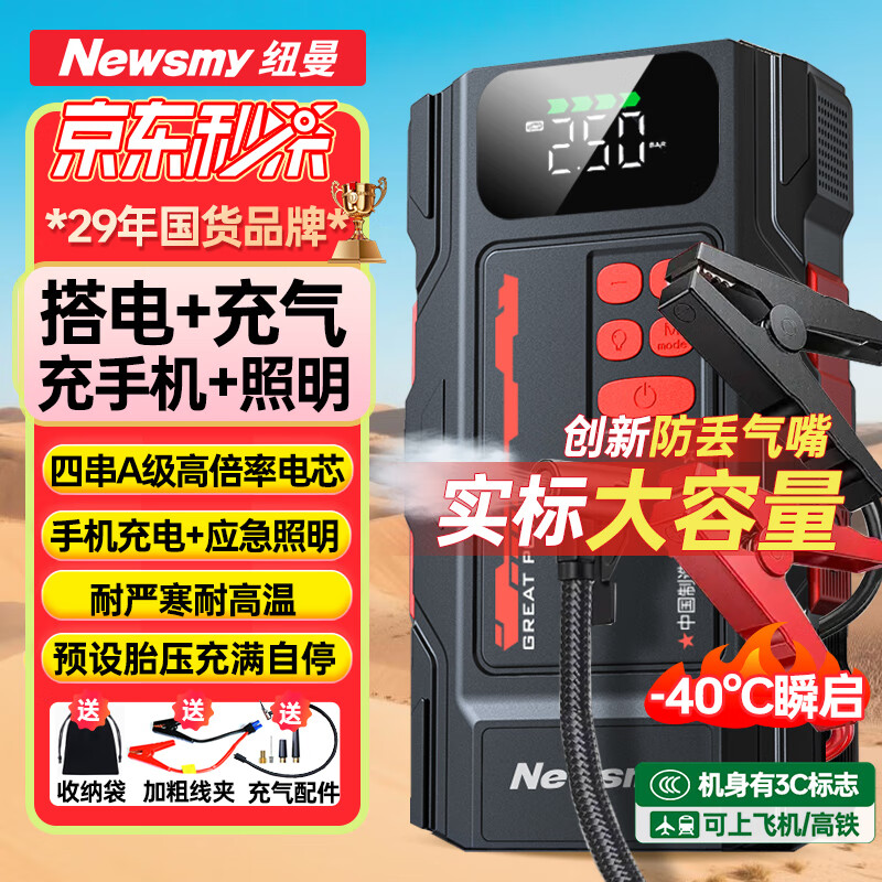 纽曼(Newsmy)【3C认证】F3汽车应急启动电源搭电宝充气泵一体机车载电瓶摩托车强启打气泵户外移动电源打火神器