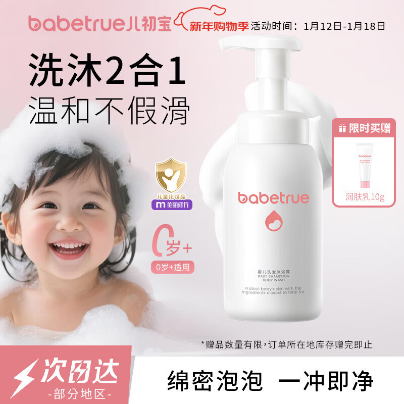 儿初宝(babetrue)婴儿洗发水沐浴露二合一儿童泡泡浴宝宝新生儿洗护温和无泪280ml