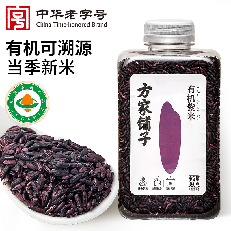 方家铺子中华老字号 有机紫米380g 无染色 紫糯米 粗粮 五谷杂粮饭 紫米粥