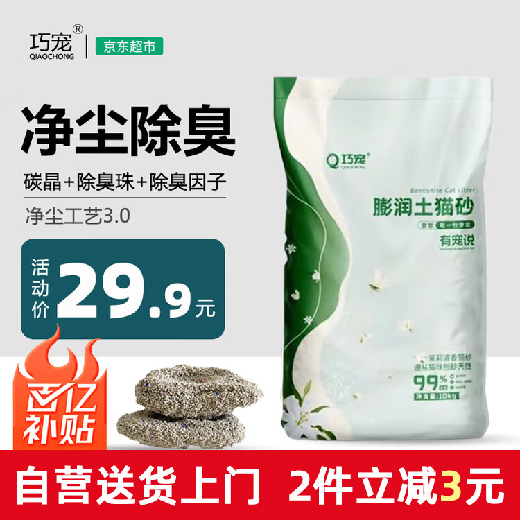 巧宠 除臭结团低尘猫砂膨润土砂猫咪用品茉莉味20斤大包装