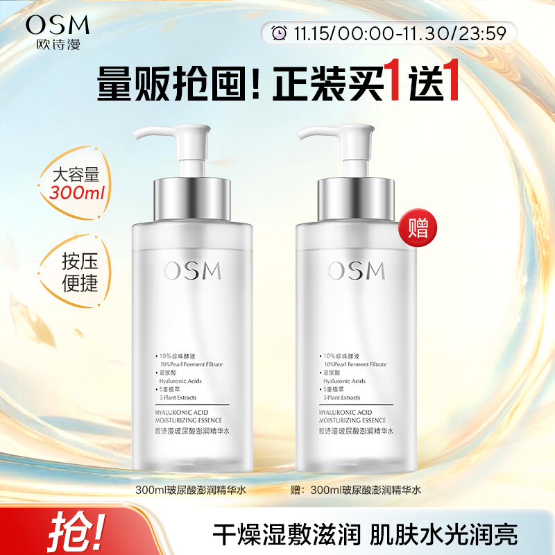 欧诗漫(OSM)玻尿酸爽肤水保湿精华水300ml大容量护肤品中秋礼物