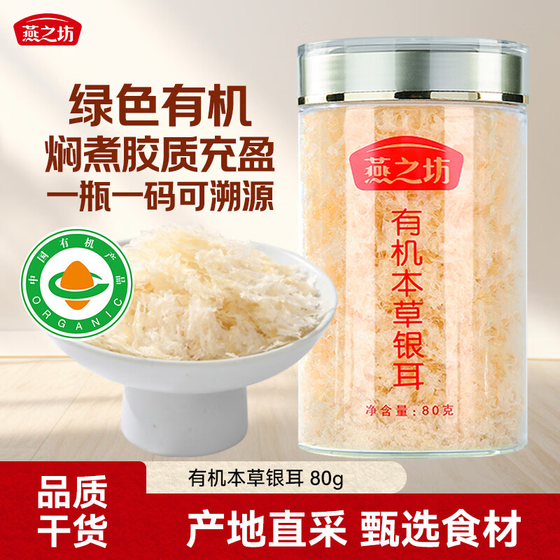 燕之坊有机本草银耳80g 莲子百合桂圆代餐早餐滋补免洗出胶节日送礼团购