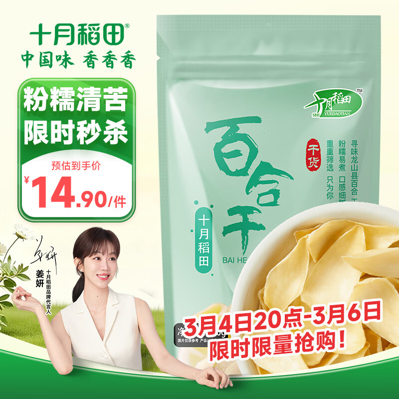 十月稻田 百合干 100g 龙山产苦百合 干货 银耳莲子桂圆枸杞羹煲汤食材