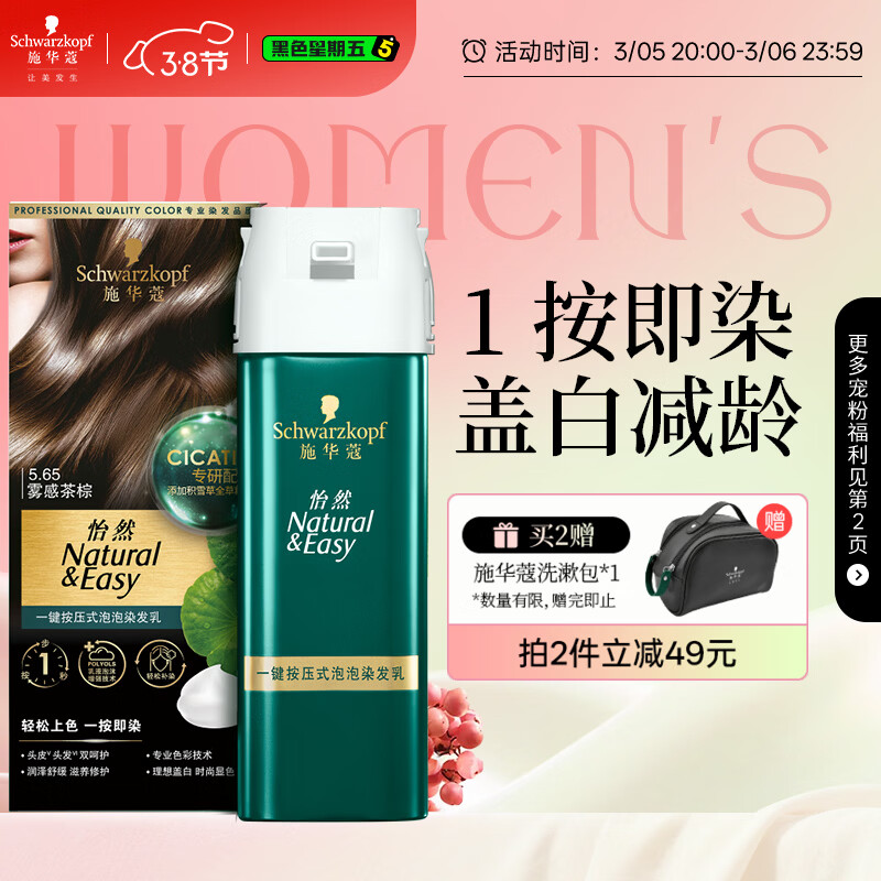 施华蔻(Schwarzkopf)怡然一按染泡泡染发乳5.65雾感茶棕染发剂轻松多次盖白 热门商品