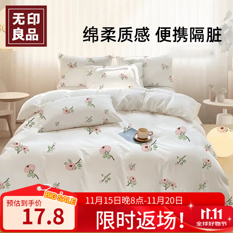 无印良品一次性床品四件套床单被套罩枕套酒店床上用品双人款-小碎花